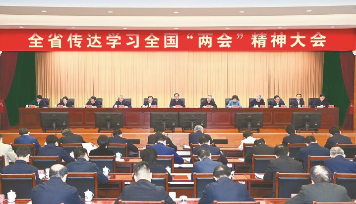 3月15日,省委召开全省传达学习全国两会精神大会。省委书记韩俊主持会议并传达习近平总书记在全国两会期间的重要讲话精神,安排我省贯彻落实工作。记者 杨 竹 摄